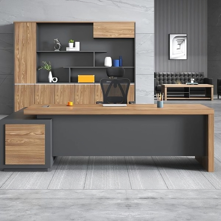 Yes, our L-shaped office tables come with a side cabinet that includes one swing door cabinet with a lock and key and two open shelves. You can also discuss additional storage options during your consultation to customize the table to your needs.